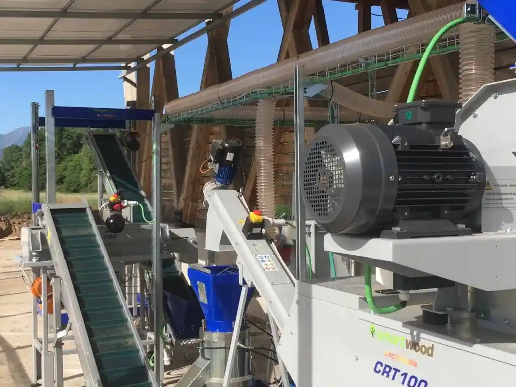 - Nuestra Solución: Instalación de una línea de peletizado completa comercializada por Ecofricalia para procesar madera local.