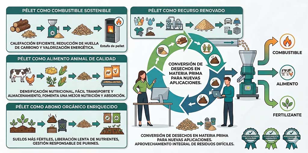 - Nuestra Propuesta: Peletizadoras compactas (PLT 50/100) y Kits de Producción de Pélet fáciles de operar.